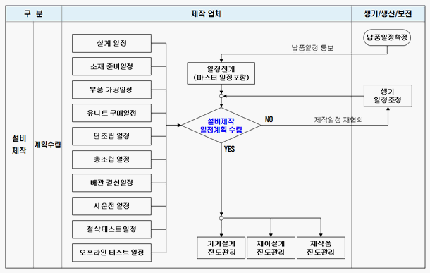 - 생산설비 납품일정에 의한 설비 제작일정 수립