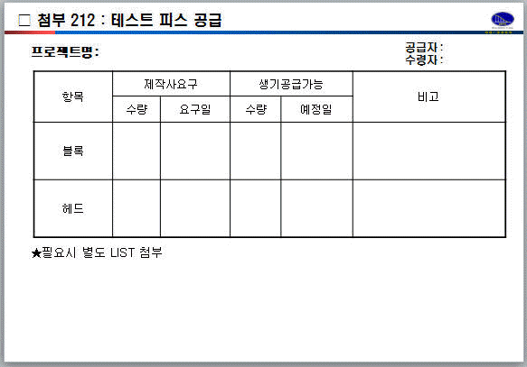 테스트 피스 공급
