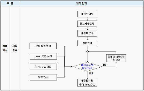 - 배관 작업의 정확성 및 배관 상태 점검