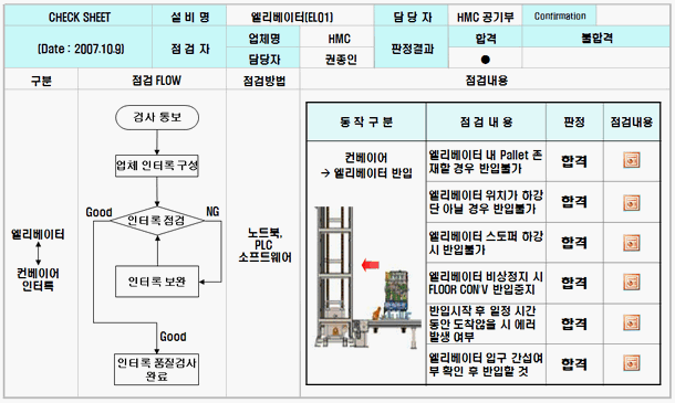 - 설비간/반송장비간 인터록 점검 (도어 인터록, 일시정지/비상정지/POWER OFF)
