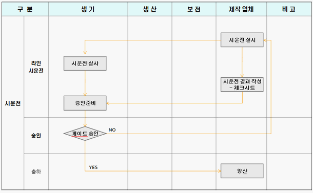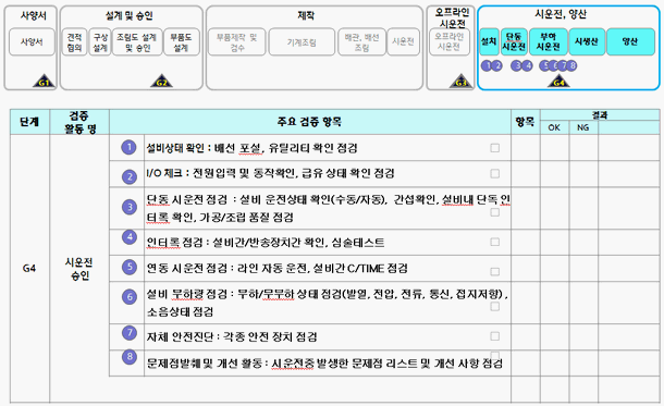 - 연동 시운전 점검: 라인 자동 운전, 설비간 Cycle Time 점검