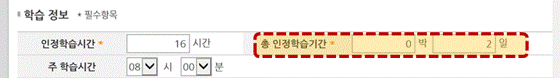 알람 '학습기간이 과정학습 일수보다 커야 한다.' 에서 확인 필요.