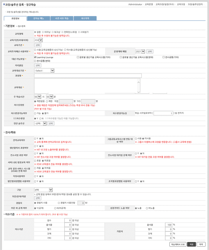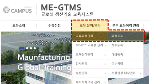 [ 글로벌 생산기술 교육 시스템] ⇨ [ 교육 윤영관리 ] ⇨ [ 과정등록 ] 에