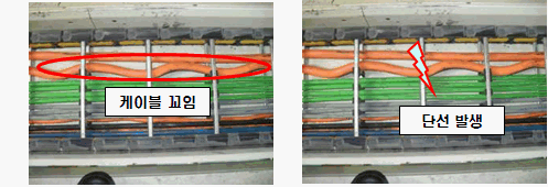 2. 케이블 간섭 피복 벗겨짐 및 단선