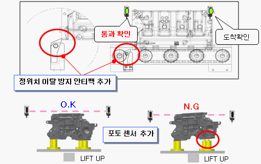 1. 입구 컨베이어 워크 진입시 안티백 미설치로 워크 정위치 이탈