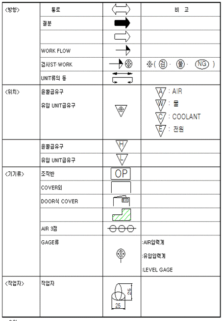6.2 유압, 공압, 윤활, GAS회로는 KS규격에 준해서 표기하며 용량을 기입할 것