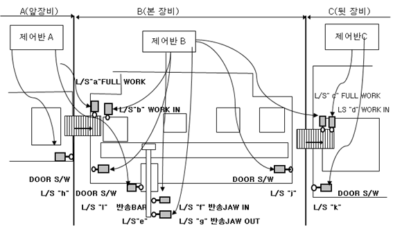| 리미트 스위치 "e" | 설비 A의 반송바 조(Jaw) 인터록 | 설비 C 제작사 | 설비 B 제작사 |