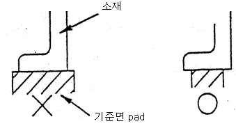 U70-13 | 소재에 닿는 기준면 패드는 소재의 닿는 면보다 작게 하고 외부로 돌출되지