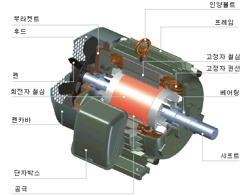 Induction Motor는 전원 상수에 의한 크게 단상 Motor와 삼상 Motor로 구분되며 공작기계용으로는 전원의 각상 전압의 위상이 120°씩 틀어진 3개의 전원으로 되어 있어