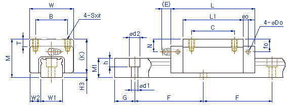 | 호칭 형번 | 측면 니플용 아래 구멍 | h2 | LM 레일 치수 | ||||||||